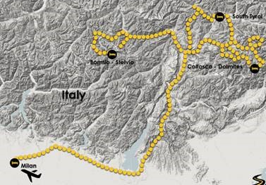 טיול פרימיום הכולל 7 ימי רכיבה מלאים על אופנועים מתוצרת דוקאטי, סה"כ 8 ימים. רוכבים על פני כבישים שאפשר רק לחלום עליהם, בין גושי סלעים אדירים המזדקרים מעל עמקים פוריים, יערות ואגמים, ושפע של צבעים… הוד והדר מרהיבי עין ולב. היכן שלא נסתכל, מתרוממים להם הרים מופלאים, וביניהם – פאס – מעבר הרים סלול ופתלתל העולה מצידו האחד של הרכב ויורד מצידו השני – וחוזר חלילה. כמות הפאסים, הנופים והיופי עולה על כל דמיון, ולנו לא נותר אלא לצחוק בקול רם בקסדה מרוב אושר! שיאי הטיול עוברים בפאסים של ה-סטלביו, סלה רונדה, פסגת המרמלדה, מנדולה פאס, בורמיו, קורניטה ד'מפצו, שמורת טרה צ'ימה ועוד, וכוללים גם מספר אתרים היסטוריים מרתקים.