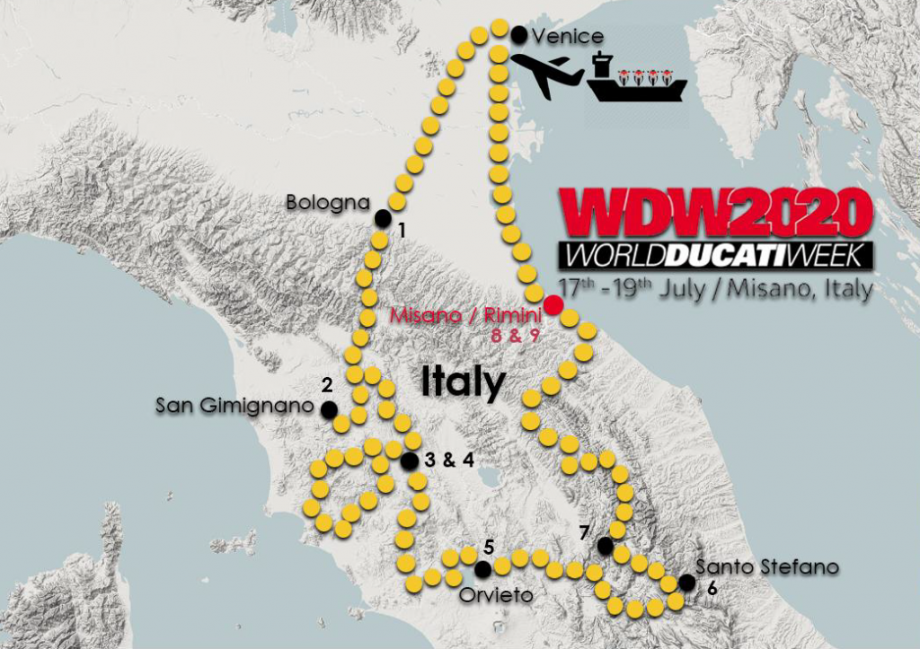הפעם (כמו בשנת 2016) אנחנו יוצאים לטיול באיטליה על גבי האופנועים שלנו, מישראל! החוויה היא אדירה, התחושה של לנסוע עם האופנוע שלך, עם לוחית רישוי מישראל, על הכבישים המדהימים של טוסקנה… להתערבב עם עוד עשרות אלפי דוקאטיסטי מוטרפים במהלך אירוע ה- WDW, לראות את העיניים שלהם נפערות לרווחה כשהם רואים לוחית רישוי ישראלית… להעמיד ציוד ואביזרים וכו' על האופנוע שלכם במחירים מגוחכים… לשים מדבקות של WDW ולדעת שהכלי שלכם היה שם… לזה אין תחליף. וכמובן, לכל מי שירצה, יש אפשרות להירשם ולעלות לסשנים עם האופנוע שלכם על מסלול מיזאנו, ולתת בגז כאילו אין מחר.