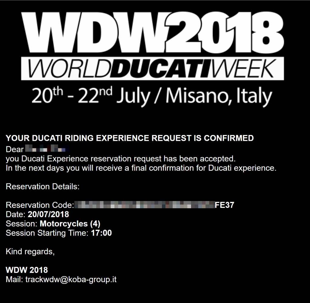 לטובת כל חברי המועדון שמתעתדים לצאת לאירוע World Ducati Week – WDW אשר מתקיים השנה בין 20-22 ביולי 2018 במסלול מיזאנו, נפתחה ההרשמה להשתתפות בחלק מקורסי ה- Ducati Riding Experience – DRE במסלול.